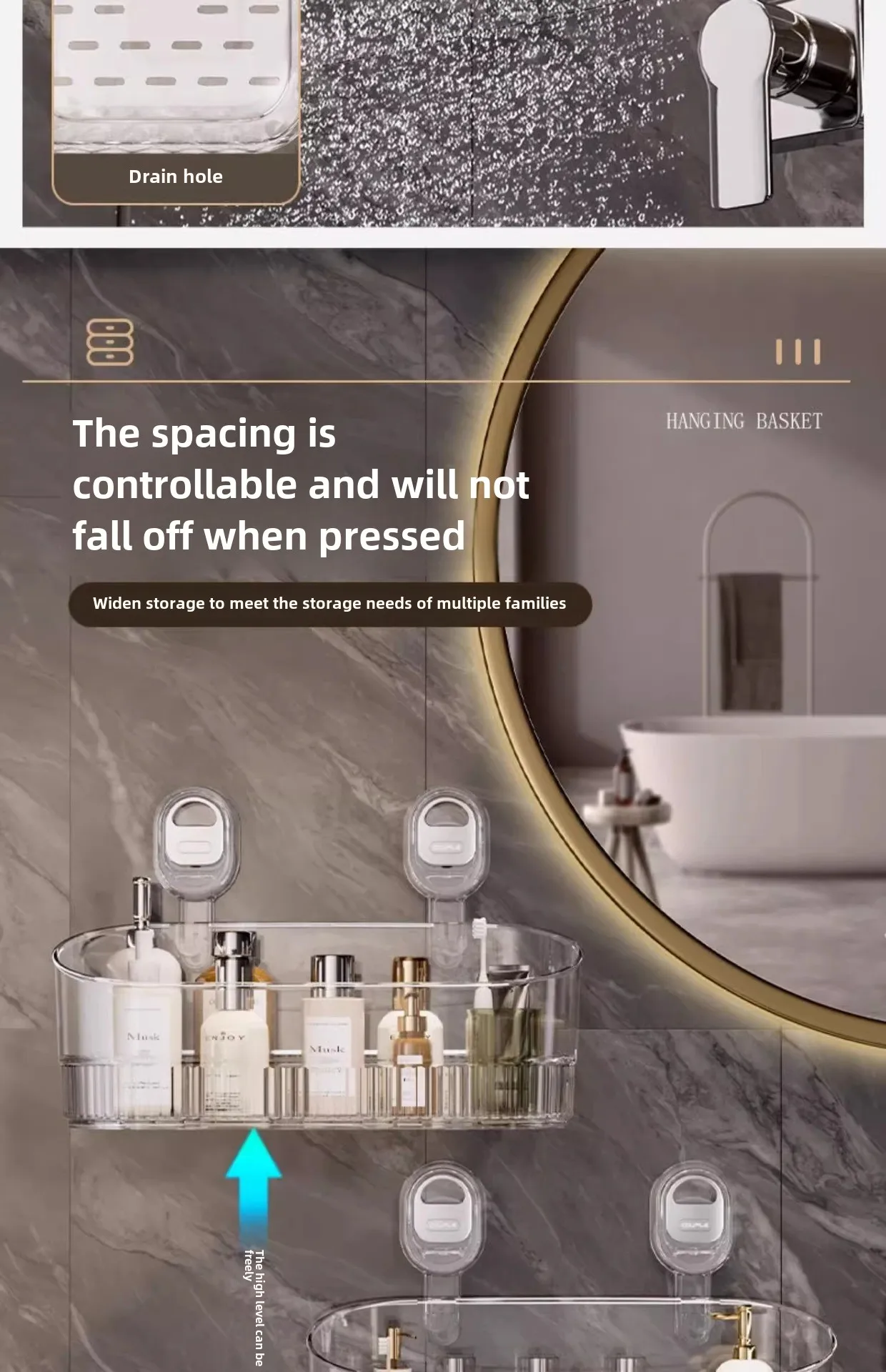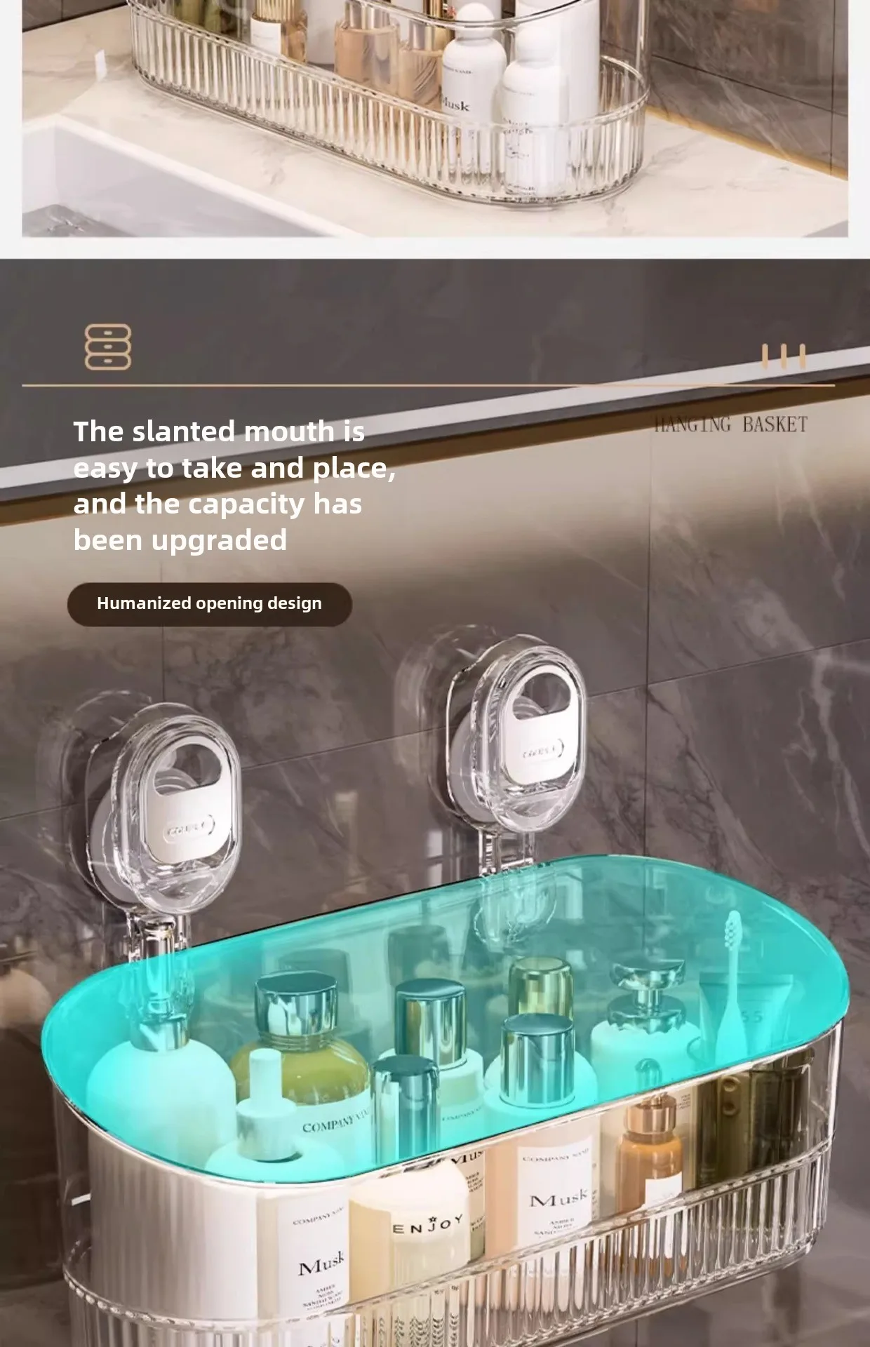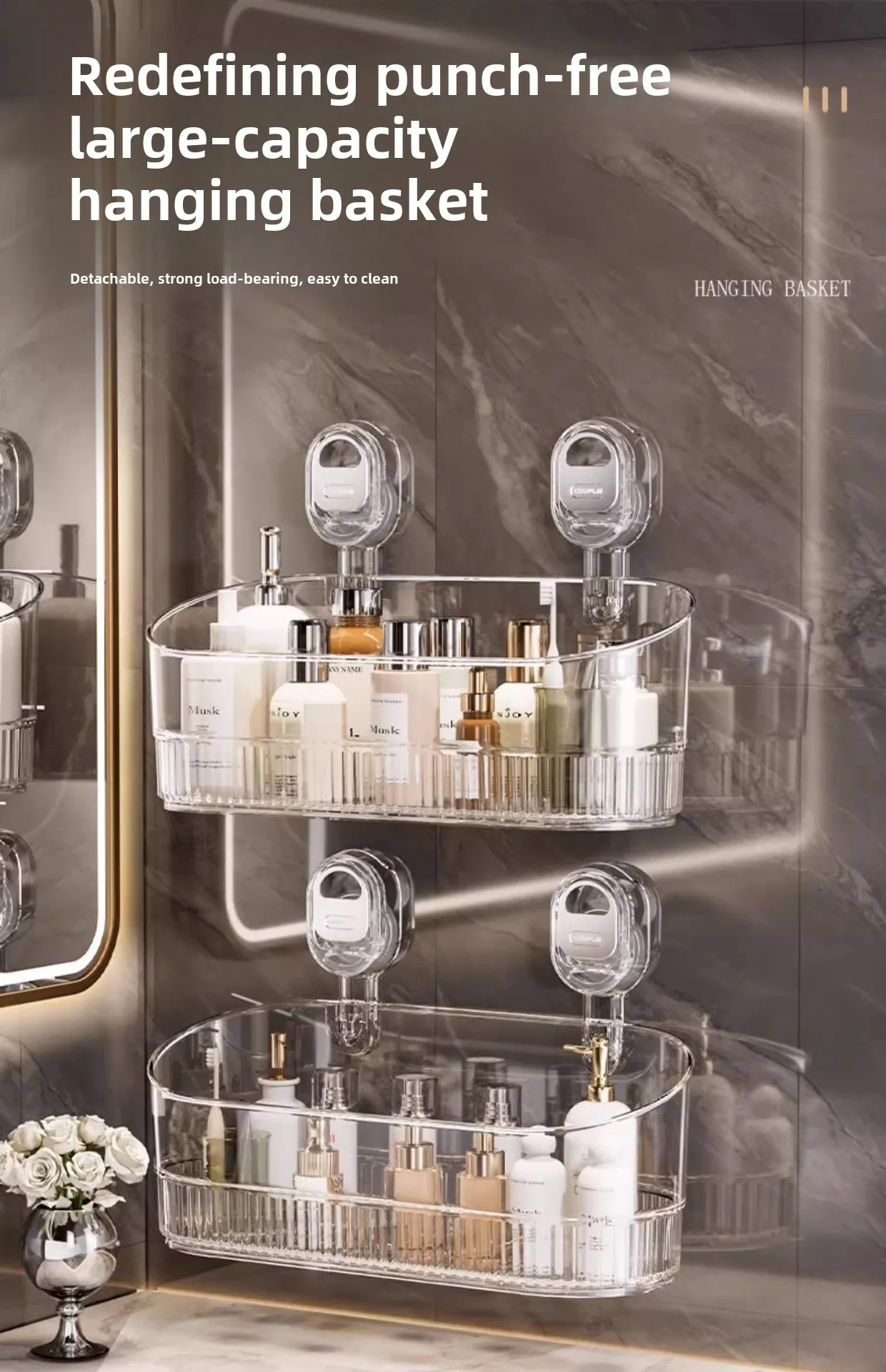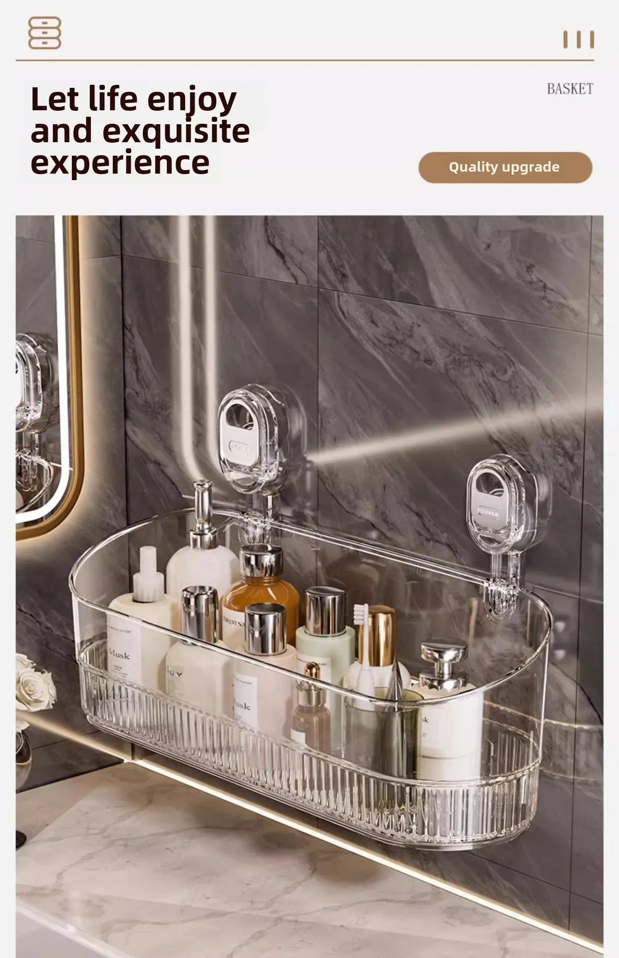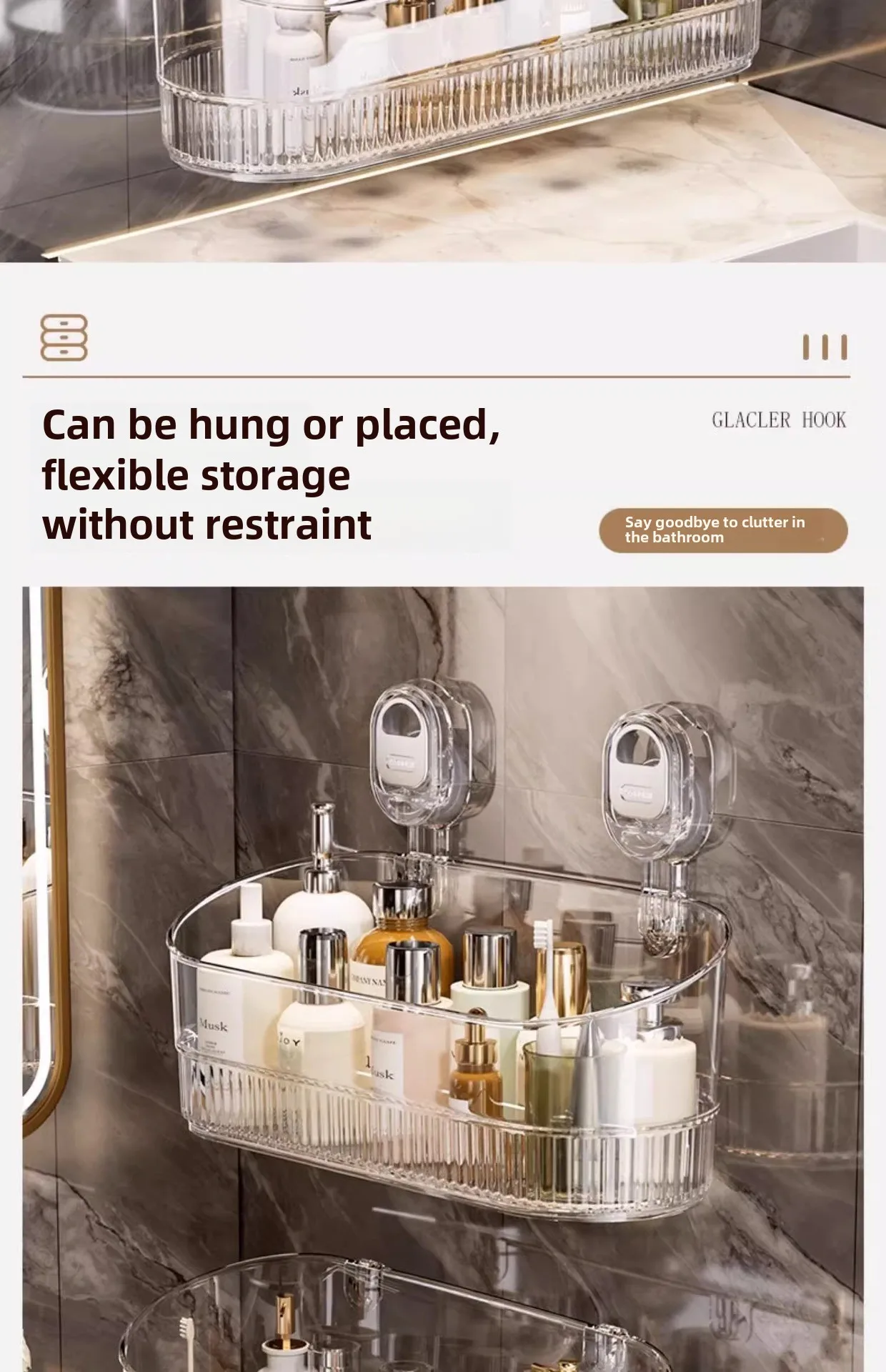 Transparent Suction Cup Wall Mounted Storage Rack